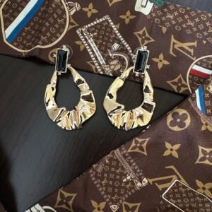 Material: The gold-toned metal has a smooth surface with a strong light reflection, enhancing the earrings’ luxurious feel. The black accents provide a striking contrast, making the design even more eye-catching.